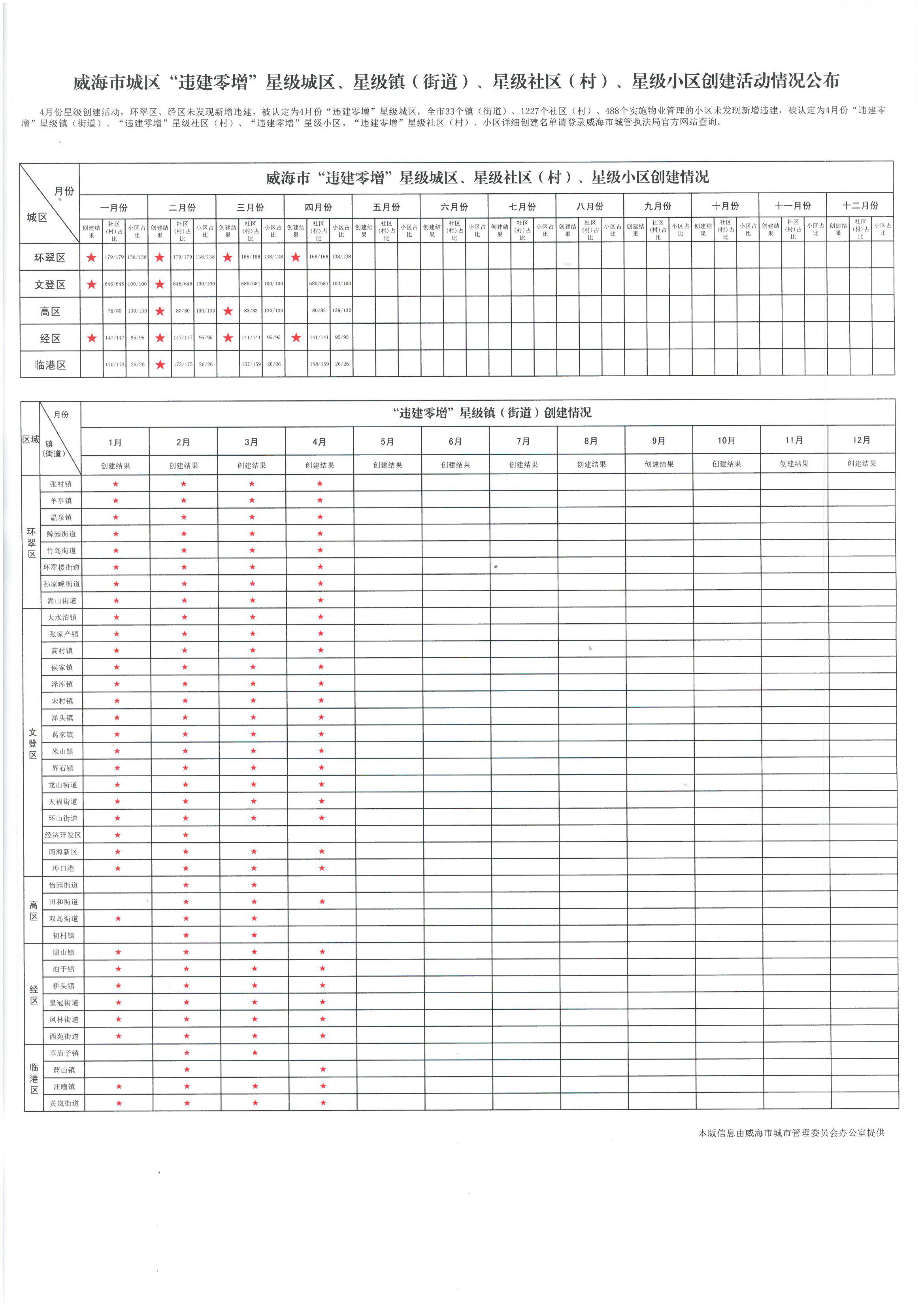 | 4月份威海市城区“违建零增”星级创建活动情况公布 | ||||