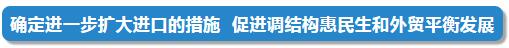 为推进互利共赢开放战略、维护自由贸易,在稳定出口的同时进一步扩大进口,倒逼国内产业改造提升,更好满足群众多样化需求,会议确定: 适应消费升级和供给提质需要,支持关系民生的日用消费品、医药和康复、养老护理等设备进口,落实降低部分商品进口税率措施,减少中间流通环节,清理不合理加价,让群众切实感受到降税带来的好处。 大力发展新兴服务贸易,促进研发设计、物流、咨询服务、节能环保等生产性服务进口。 完善免税店政策,扩大免税品进口。增加有助于转型发展的技术装备进口。 会议要求,要优化进口通关流程,开展海关“经认证的经营者”(AEO)国际互认,提高进口贸易便利化水平。 清理进口环节不合理管理措施和收费。 创新进口贸易方式,支持跨境电商等新业态发展。 加强外贸诚信体系建设和知识产权保护。 促进对外贸易和对外投资有效互动。 | ||||