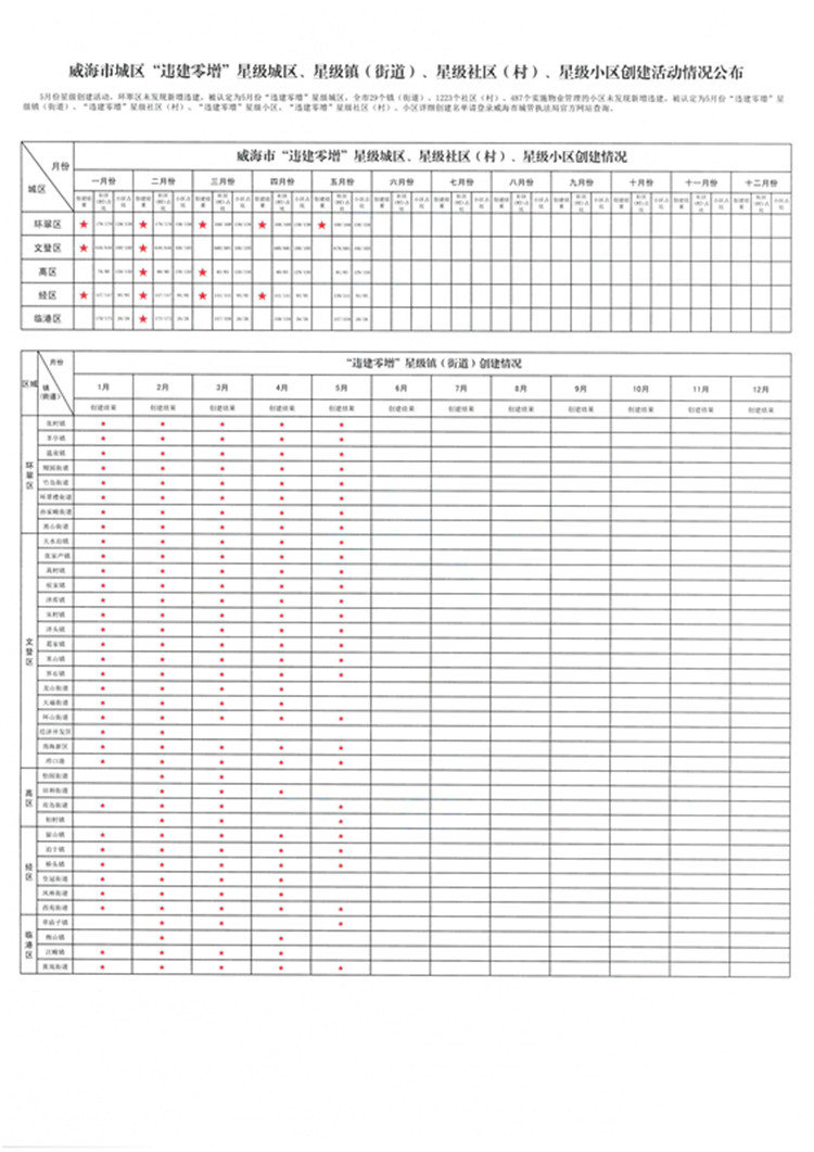 | 5月份威海市城区“违建零增”星级创建活动情况公布 | ||||